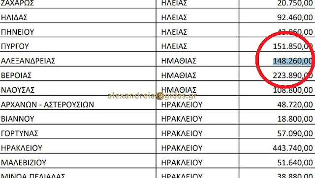 Ο δήμος Αλεξάνδρειας πήρε 148.260,00 ευρώ όπως θα δείτε και στο παρακάτω έγγραφο: