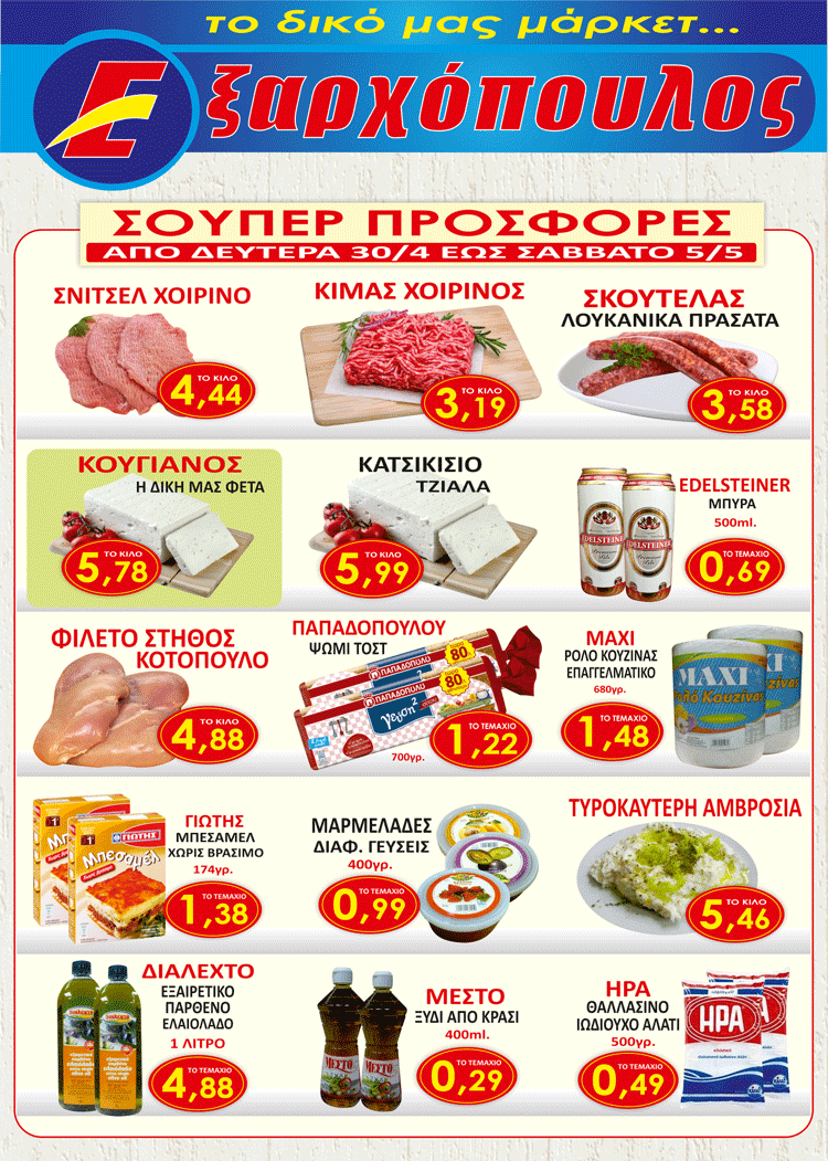 Μέχρι και το Σάββατο 5 Μαΐου στον ΕΞΑΡΧΟΠΟΥΛΟ θα βρείτε έξτρα προσφορές κρεοπωλείου που θα δείτε παρακάτω.