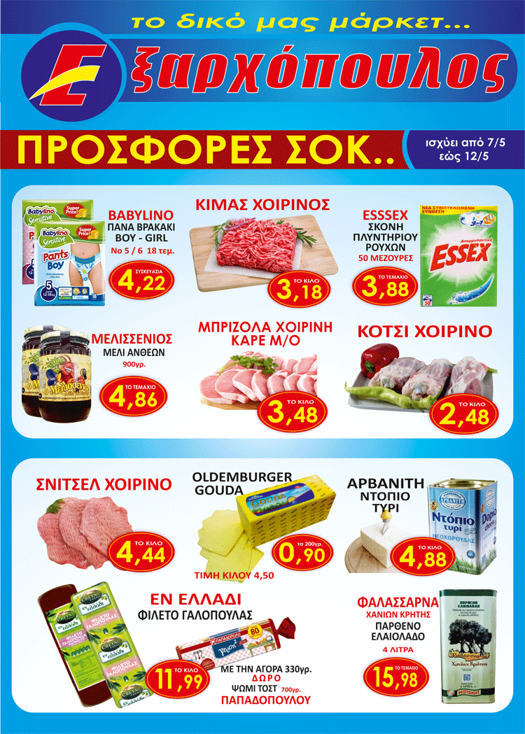 Από την Δευτέρα 6 Μαΐου μέχρι και το Σάββατο 12 Μαΐου στον ΕΞΑΡΧΟΠΟΥΛΟ θα βρείτε πολλές προσφορές και έξτρα τιμές στα είδη κρεοπωλείου που θα δείτε παρακάτω.