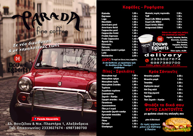 Σε μία προσφορά που “κάνει τη διαφορά” προχωράει το καφέ PARADA στην πόλη της Αλεξάνδρειας.