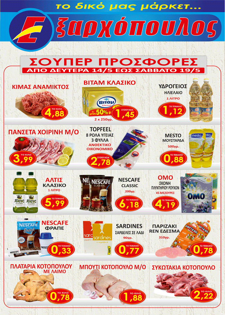 Από την Δευτέρα 14 Μαΐου μέχρι και το Σάββατο 19 Μαΐου στον ΕΞΑΡΧΟΠΟΥΛΟ θα βρείτε πολλές προσφορές όπως θα δείτε παρακάτω.
