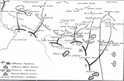 Μετά από αιματηρές μάχες σώμα μέ σώμα καί διά της λόγχης, οι Ελληνες διέσπασαν τήν πρώτη αμυντική γραμμή των Τούρκων. Κατέλαβαν καί τήν δεύτερη αμυντική γραμμή στήν οροσειρά Τσάλ Αντίζ. Ο Κεμάλ , παρακολουθώντας τη μάχη από το σταθμό διοίκησης του και βλέποντας το Στρατό του ν’ αποδεκατίζεται, μουρμουρίζει: « Αν ηττηθούμε, Έλληνες θα μας έχουν νικήσει»…