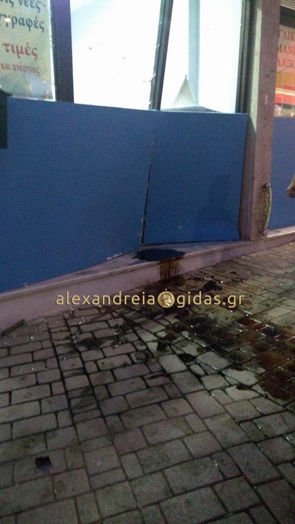 Συγκλονιστικές και πρωτόγνωρες εικόνες έζησε σήμερα Τετάρτη η πόλη της Βέροιας στην Πλατεία Ωρολογίου. Όπως αναφέρει το ρεπορτάζ του veriotis.gr, που βρέθηκε από την πρώτη στιγμή στο σημείο, οδηγός ενός σπορ αυτοκινήτου, μεγάλου κυβισμού, που ανέβαινε την Μητροπόλεως, για άγνωστους μέχρι στιγμής λόγους, έχασε τον έλεγχο του οχήματός του, με αποτέλεσμα να καβαλήσει το πεζοδρόμιο, να παρασύρει ότι βρήκε μπροστά του (παγκάκια και παρκαρισμένα μηχανάκια) και να καρφωθεί στην τζαμαρία φροντιστηρίου ξένων γλωσσών.