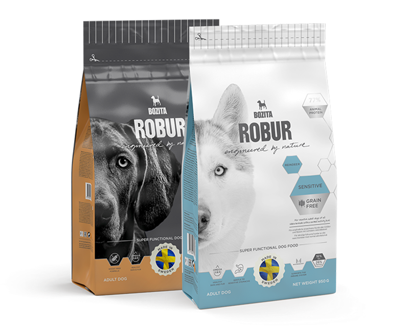 Η συνταγή της Bozita Robur είναι καλά μελετημένη μέχρι την παραμικρή λεπτομέρεια και κάθε συστατικό έχει ένα σημαντικό, λειτουργικό καθήκον. Το MacroGard, ένα κυτταρικό τοίχωμα ζύμης βελτιώνει το ανοσοποιητικό σύστημα και σύμφωνα με μελέτες δείχνει να επιδρά θετικά στην επούλωση φλεγμονών, βακτηριακών λοιμώξεων και αλλεργιών. Ενώ η γλυκοζαμίνη και χονδροϊτίνη φροντίζουν για την κινητικότητα των αρθρώσεων και τη διατήρηση του αρθρικού χόνδρου, οι πρεβιοτικοί φρουκτο-ολιγοσακχαρίτες (FOS) προωθούν την πέψη και μια ισορροπημένη εντερική χλωρίδα. Πολύτιμα ωμέγα-3 & ωμέγα-6 λιπαρά οξέα προσφέρουν μια ποικιλία από οφέλη για την υγεία, κυρίως την υγεία του δέρματος και τριχώματος.