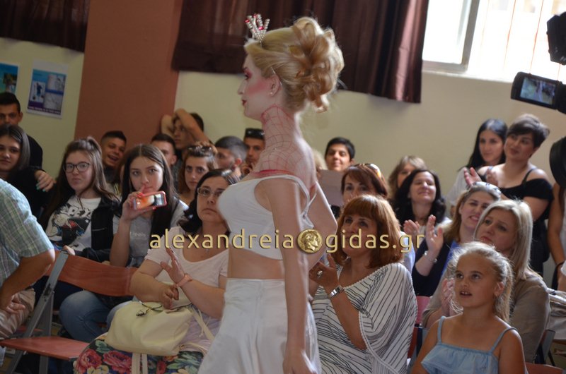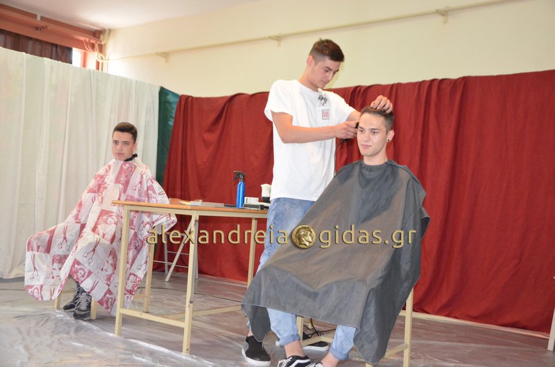 Το τμήμα κομμωτικής παρουσίασε ζωντανά αντρικά κουρέματα αλλά και πασαρέλα μόδας με χτενίσματα και μακιγιάζ που επιμελήθηκαν οι ίδιοι οι μαθητές του σχολείου.