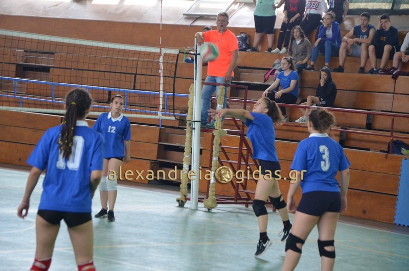Σχολικοί αγώνες βόλεϊ κοριτσιών Γυμνασίων του δήμου Αλεξάνδρειας πραγματοποιήθηκαν το πρωί της Πέμπτης 24 Μαΐου στο κλειστό του δημοτικού σταδίου της πόλης μας.