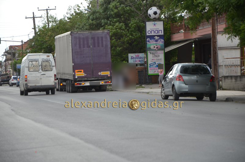 Στην οδό της Ελ. Βενιζέλου στη στροφή προς Γιαννιτσά χτύπησαν ένα Ι.Χ. αυτοκίνητο με φορτηγό.
