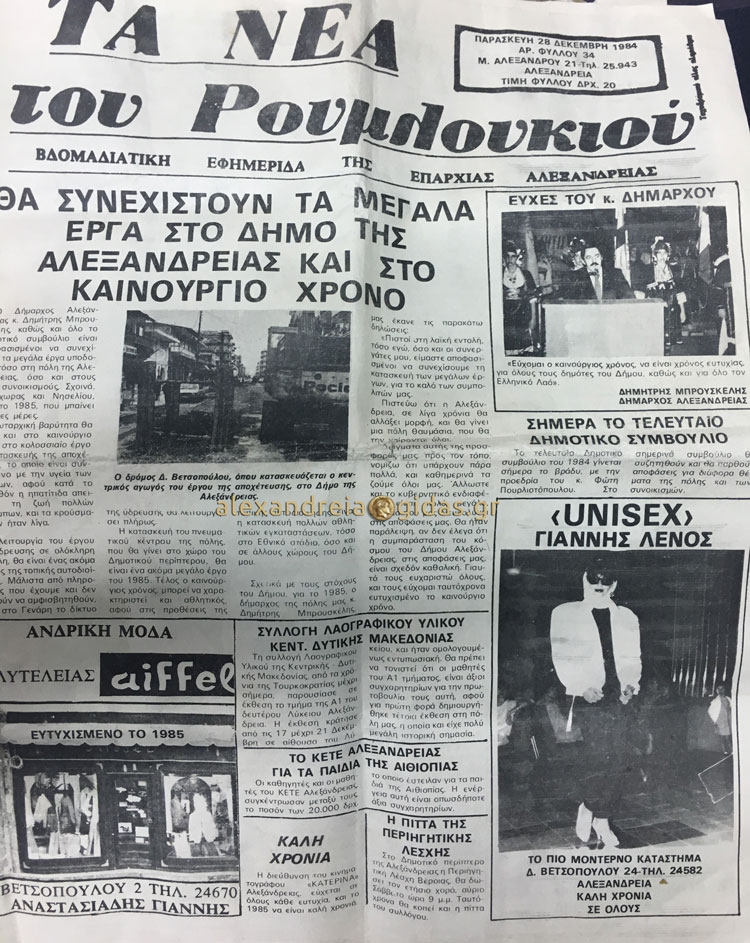 Φίλος του Αλεξάνδρεια-Γιδάς μας έφερε την εφημερίδα Τα Νέα του Ρουμλουκιού του Τάσου Τσιάρτα όπου παρουσιάζεται αποκλειστικό ρεπορτάζ του χορού του ΑΜΣ Αλεξάνδρειας τα Χριστούγεννα του 1984 στο κέντρο Ζουμ όπου εμφανιζόταν ο Χάρρυ Κλυνν.