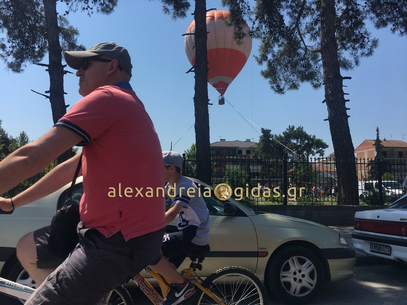 Μετά την ποδηλατοπορεία μικροί και μεγάλοι μπορούν να απολαύσουν μία βόλτα πάνω από την Αλεξάνδρεια με το τεράστιο αερόστατο που έχει στηθεί στον χώρο της εκκλησίας της Παναγίας Αλεξάνδρειας.