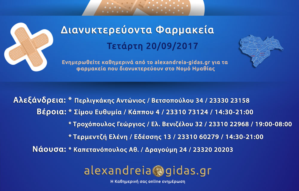 Εφημερεύοντα – διανυκτερεύοντα φαρμακεία Ημαθίας Τετάρτη 20 Σεπτεμβρίου