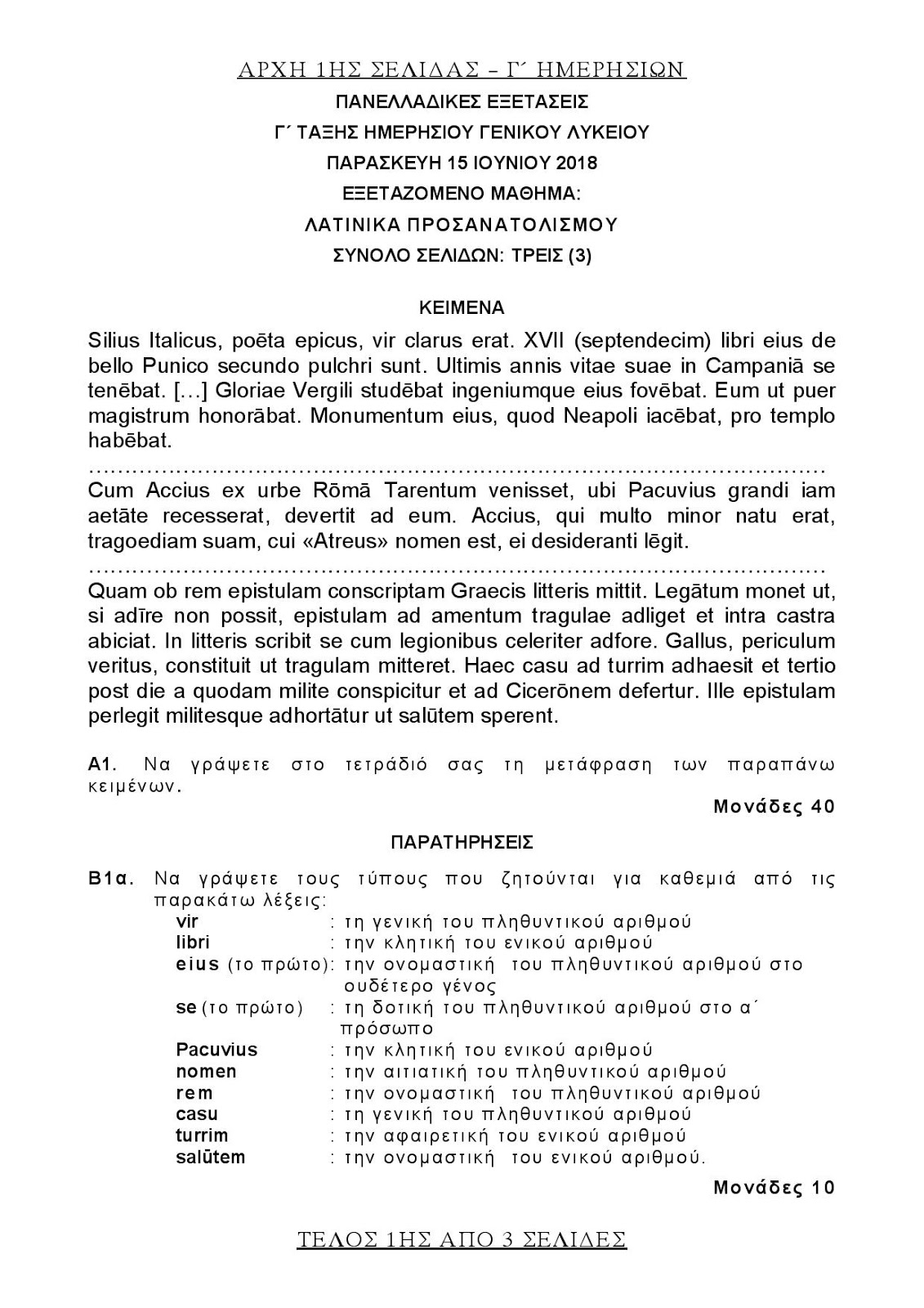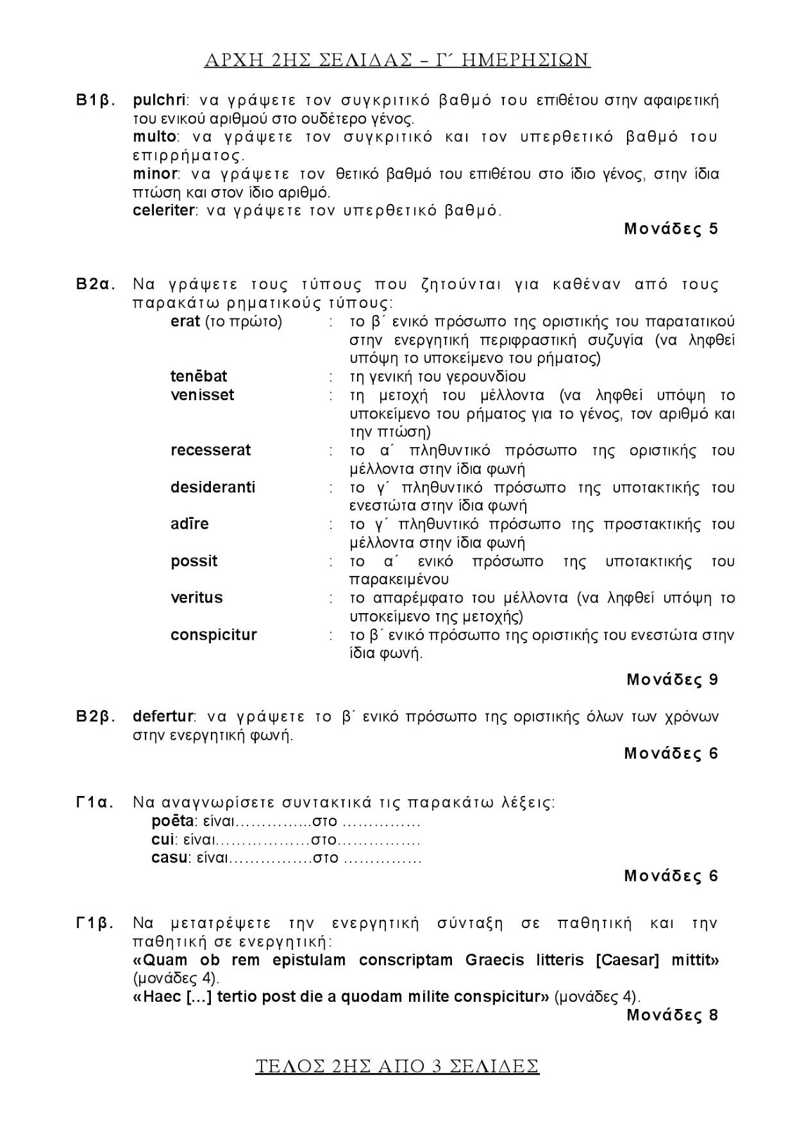 Σας παρουσιάζουμε παρακάτω το θέμα και τις απαντήσεις για το μάθημα των Λατινικών:
