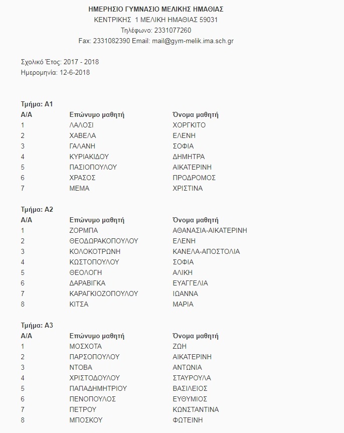 Τους αριστούχους μαθητές του ανακοίνωσε σήμερα Παρασκευή 15 Ιουνίου το Γυμνασίου Μελίκης για το σχολικό έτος 2017-2018.