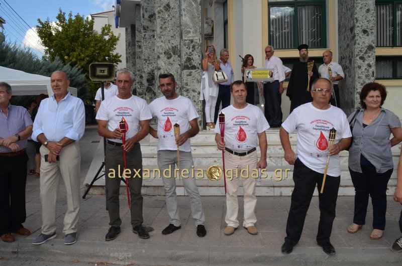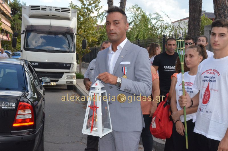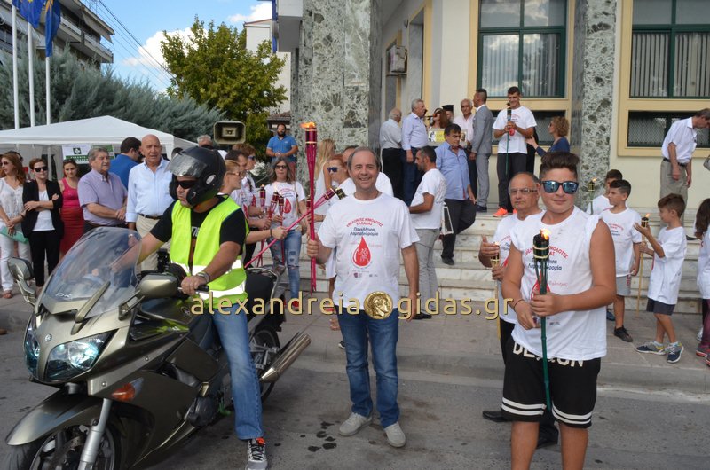 Ο δήμος Αλεξάνδρειας υποδέχτηκε στην πόλη μας πριν από λίγο σήμερα Τετάρτη 20 Σεπτεμβρίου τη “Φλόγα της Αγάπης” της 15ης Λαμπαδηδρομίας που διοργανώνει η Πανελλήνια Ομοσπονδία Συλλόγων Εθελοντών Αιμοδοτών (Π.Ο.Σ.Ε.Α).