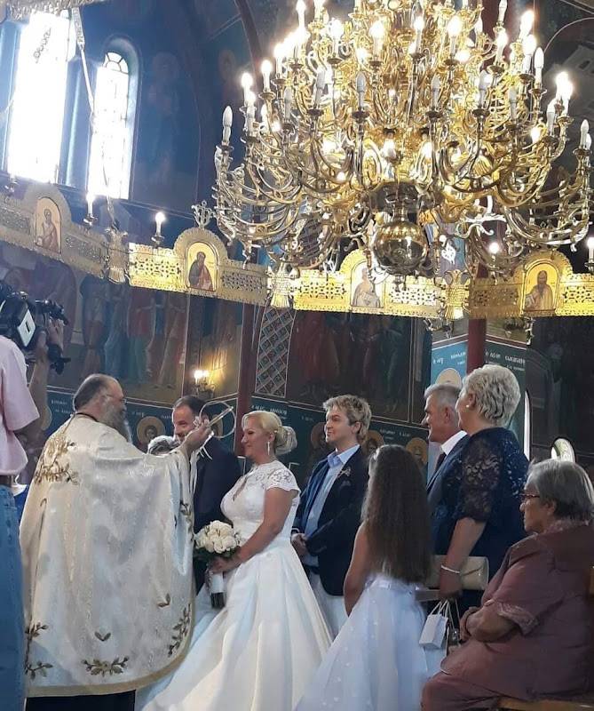Το μυστήριο τελέστηκε στον Ιερό Μητροπολιτικό Ναό Κοιμήσεως της Θεοτόκου Αλεξάνδρειας με κουμπάρο τον γνωστό κομμωτή της πόλης μας Νίκο Σούρα.