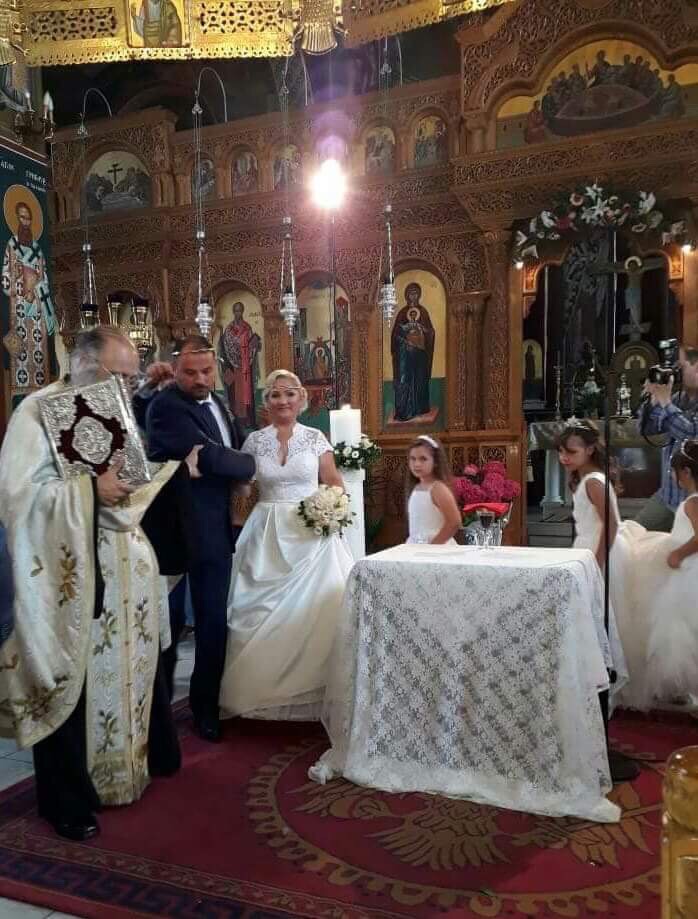 Το μυστήριο τελέστηκε στον Ιερό Μητροπολιτικό Ναό Κοιμήσεως της Θεοτόκου Αλεξάνδρειας με κουμπάρο τον γνωστό κομμωτή της πόλης μας Νίκο Σούρα.