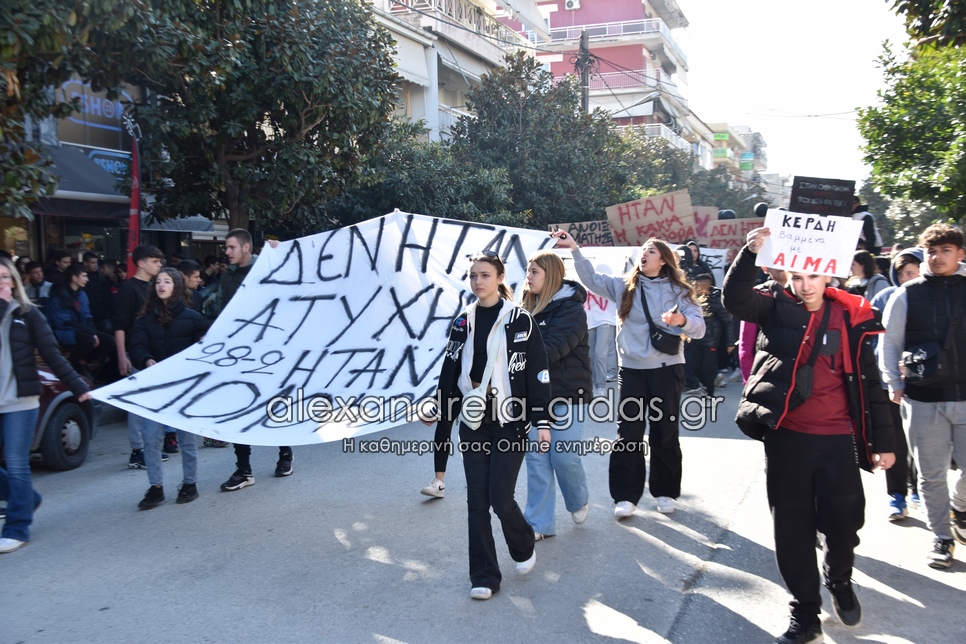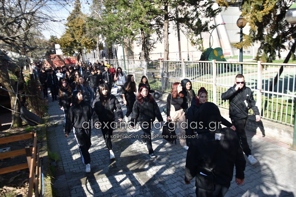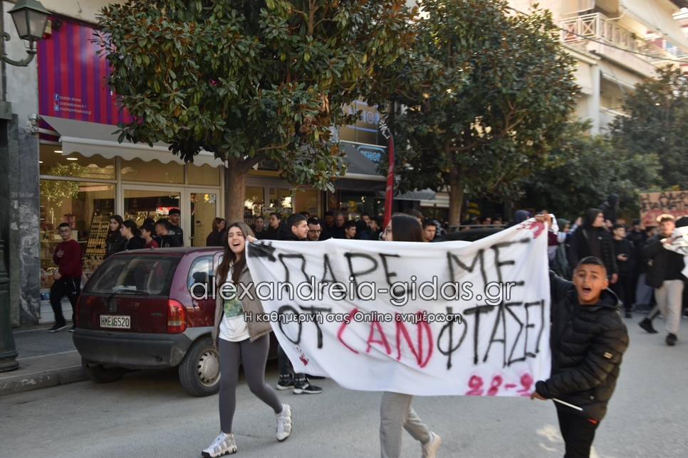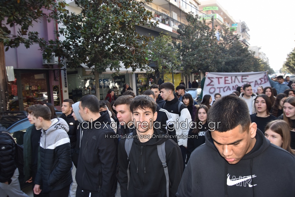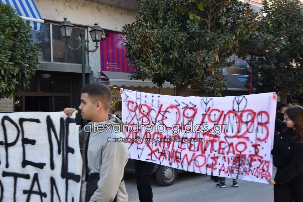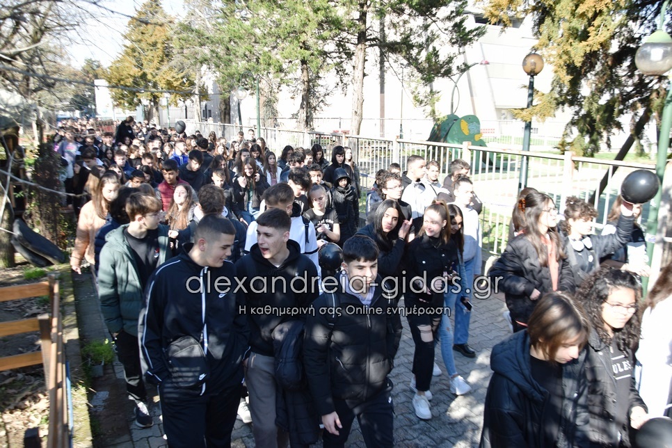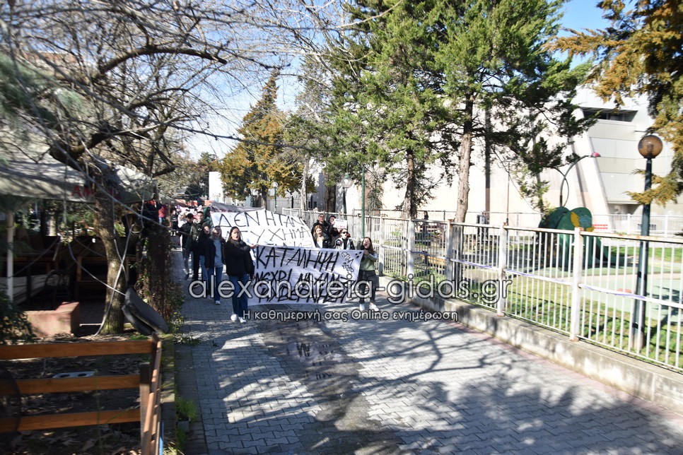 Το πρωί της Τετάρτης 8 Μαρτίου 2023 οι μαθητές των Λυκείων της Αλεξάνδρειας πραγματοποίησαν πορεία διαμαρτυρίας για το δυστύχημα στα Τέμπη.
