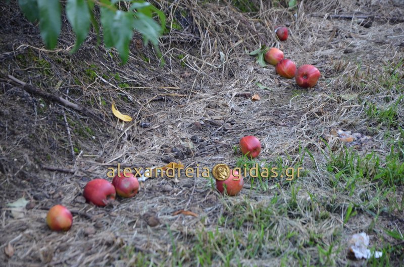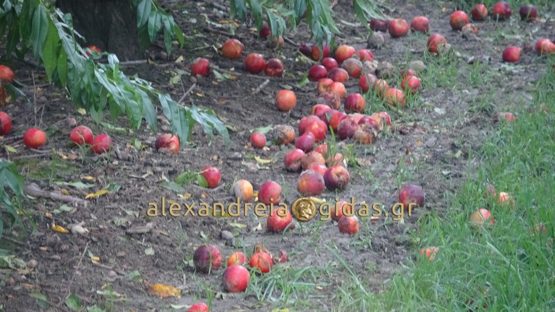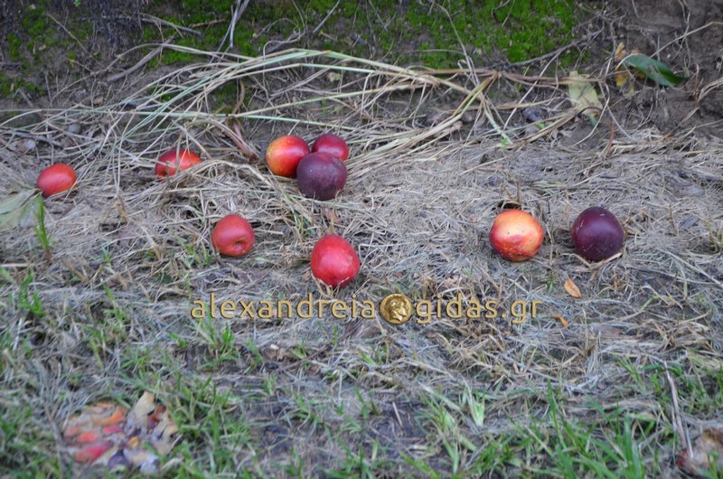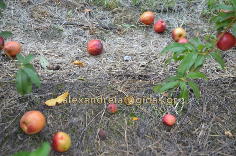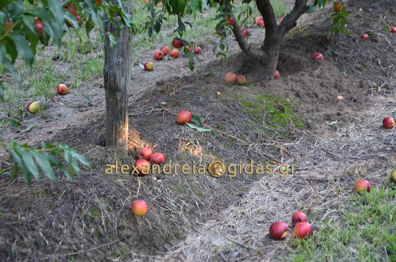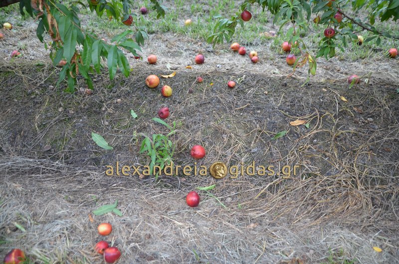 Επισκεφτήκαμε και τις καλλιέργειες όπου είδαμε ώριμα φρούτα να βρίσκονται στο έδαφος από τα φαινόμενα που προαναφέραμε.