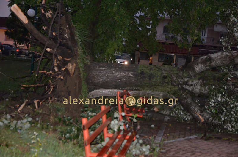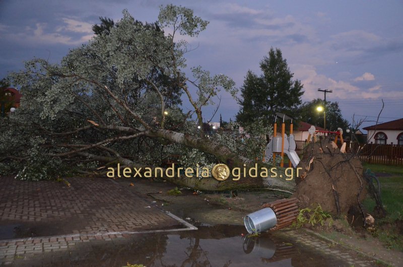 Δέντρα ξεριζώθηκαν και έπεσαν πάνω σε σπίτια, αυτοκίνητα ακόμα και παιδικές χαρές όπου έπαιζαν παιδιά.