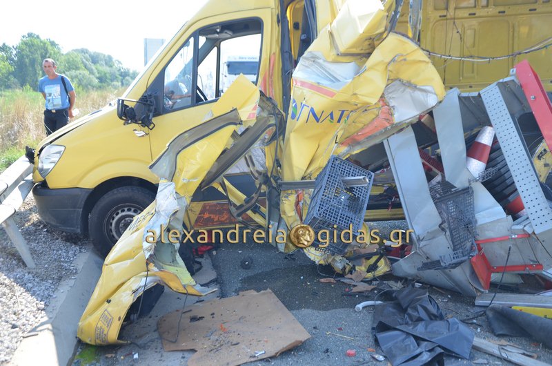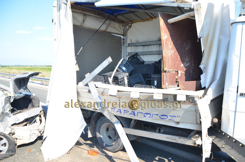 Με κατεύθυνση από τη Θεσσαλονίκη προς Αλεξάνδρεια, λίγο πριν τα ΣΕΑ Πλατάνου, συγκρούστηκαν τρία οχήματα. Ένα Ι.Χ., ένα φορτηγάκι και ένα όχημα της Εγνατίας Οδού.
