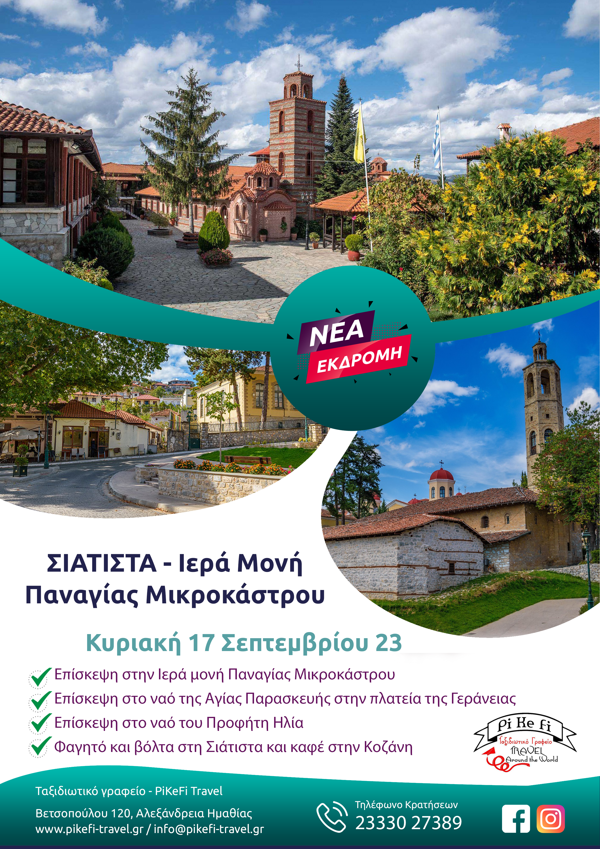 Δείτε παρακάτω όλες τις πληροφορίες για την εκδρομή στη Σιάτιστα και στην Ιερά Μονή Παναγίας Μικροκάστρου