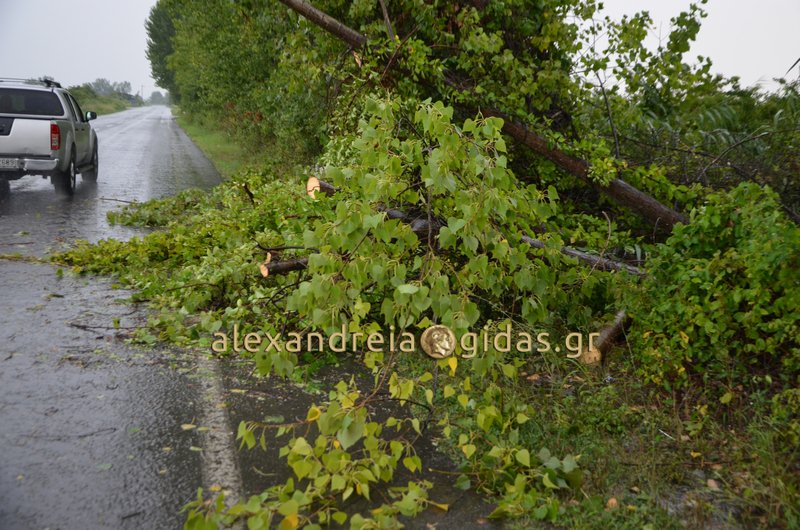 Οι ισχυροί άνεμοι του απογεύματος της Παρασκευής 3 Αυγούστου έριξαν δέντρα στην Π.Ε.Ο. Αλεξάνδρειας – Βέροιας στο ύψος του Καμποχωρίου με κατεύθυνση προς το Βρυσάκι.