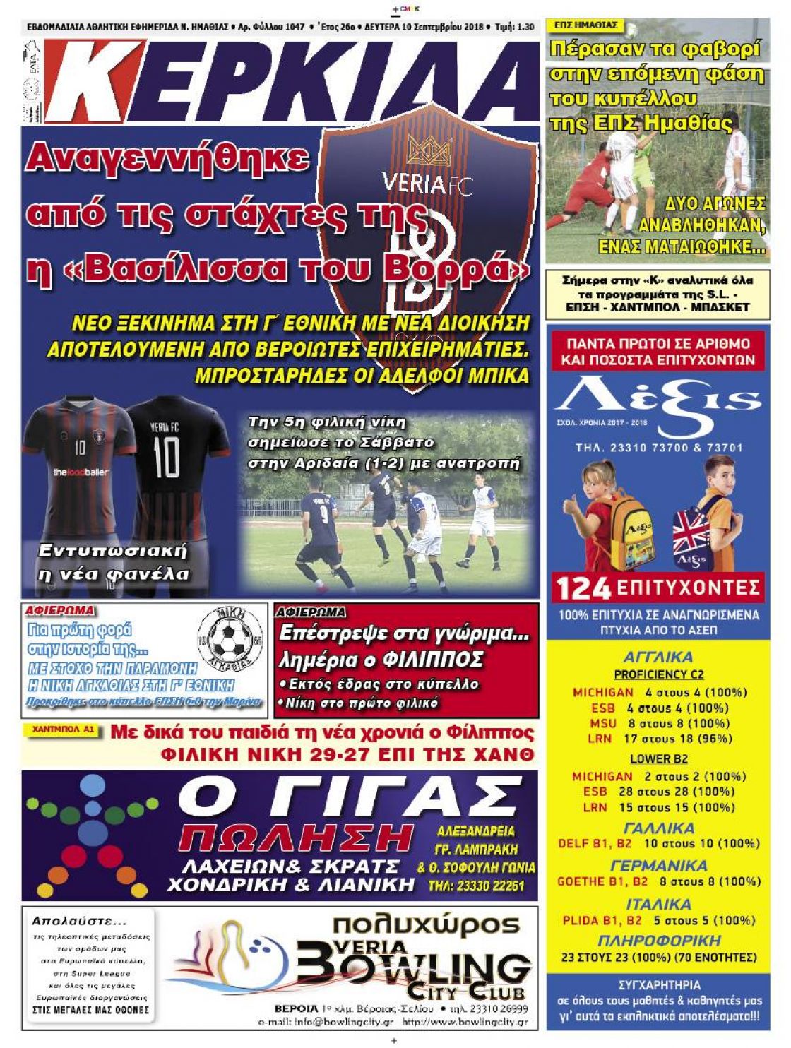 Κυκλοφορεί σήμερα Δευτέρα το νέο φύλλο της μοναδικής αθλητικής εφημερίδας του νομού Ημαθίας, της ΚΕΡΚΙΔΑΣ.