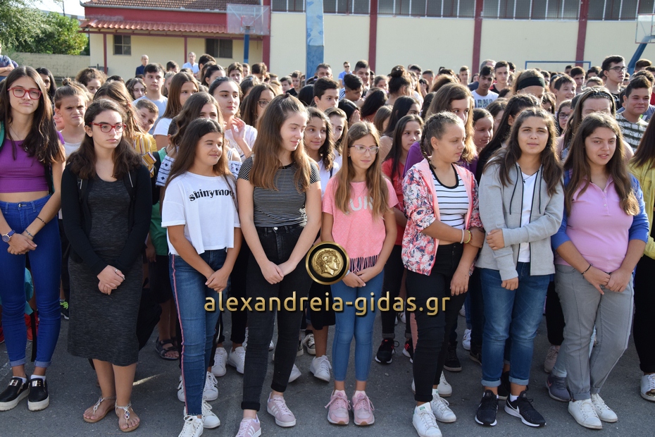 Παρουσία του προέδρου του δημοτικού συμβουλίου Αλεξάνδρειας Δημήτρη Ράπτη, οι διευθυντές και εκπαιδευτικοί έδωσαν τις ευχές τους για καλή σχολική χρονιά σε όλους τους μαθητές και μαθήτριες των δύο σχολείων.