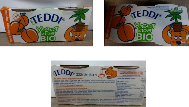 Πρόκειται για το παιδικό επιδόρπιο γιαουρτιού με βερίκοκο με την εμπορική ονομασία “Teddi Yogurt Kids Bio”, σε χάρτινη συσκευασία των 230 g που περιλαμβάνει 2 τεμάχια των 115 g έκαστο, με αριθμό παρτίδας L.171024 και ημερομηνία λήξης 24.10.2017, το οποίο παρασκευάστηκε από την Ιταλική εταιρεία “Fattoria Scaldasole srl” και διακινήθηκε στην Ελλάδα από την επιχείρηση