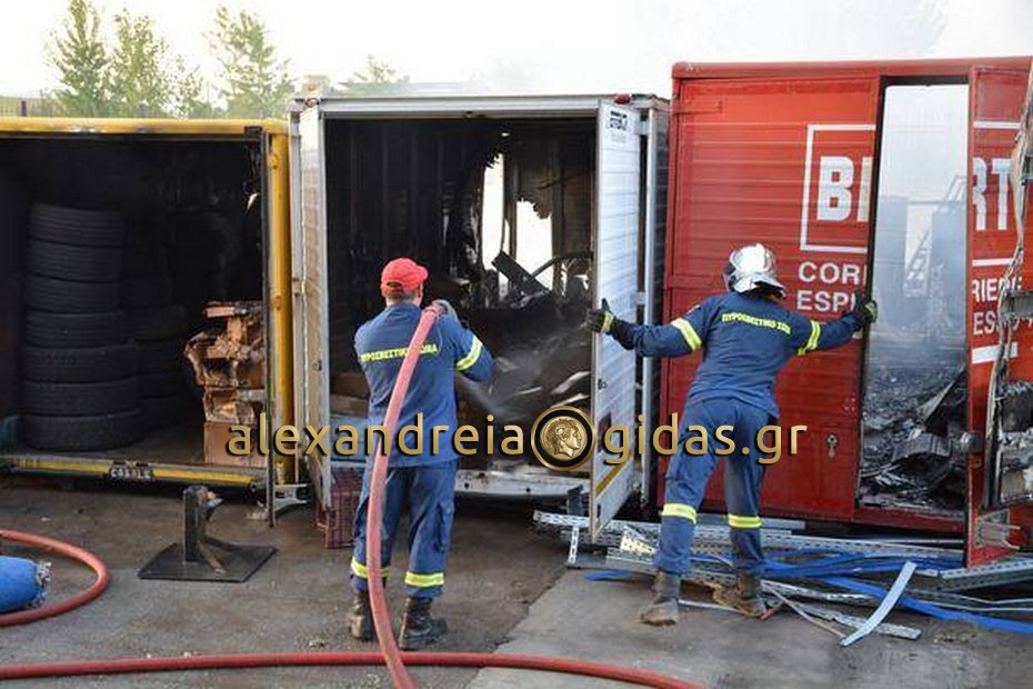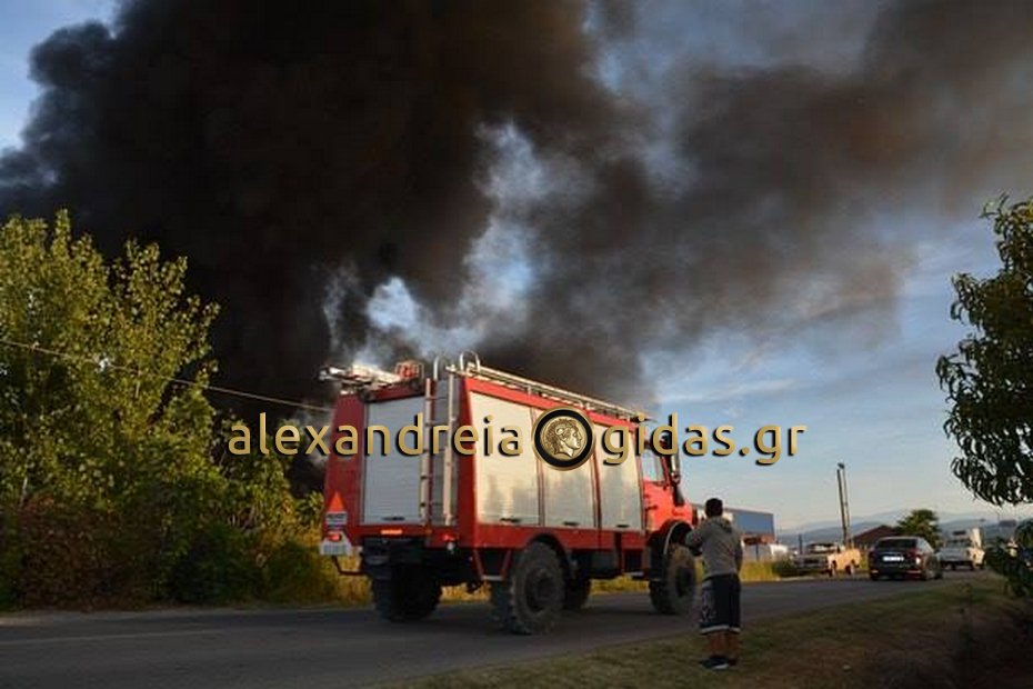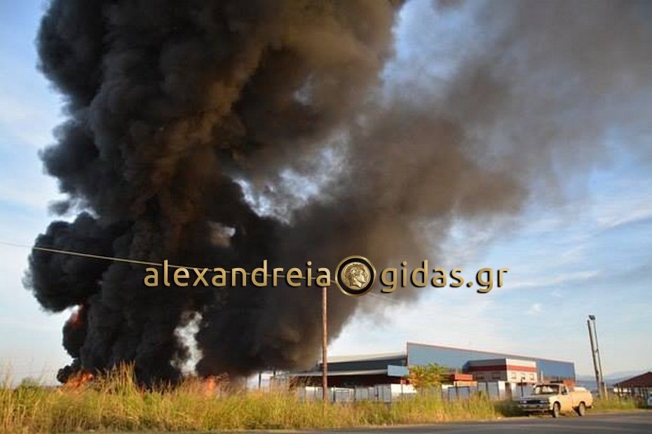 Μεγάλη φωτιά ξέσπασε νωρίς το απόγευμα της Πέμπτης 20/9 σε επιχείρηση εισαγωγής και εμπορίας μεταχειρισμένων οχημάτων παντός τύπου και συσκευασίας, στο 7ο χιλιόμετρο Βέροιας – Αγίου Γεωργίου. Ο πυκνός μαύρος καπνός έγινε αμέσως ορατός από πολλά χιλιόμετρα, αναστατώνοντας τους κατοίκους της Βέροιας και των γύρω περιοχών. Η φωτιά ξέσπασε στον πίσω εξωτερικό χώρο της επιχείρησης, σε πλαστικές κλούβες, κατακαίοντας μαζί με τις εκατοντάδες κλούβες, παλέτες, καρότσες φορτηγών και εργαλεία, ενώ έκαψε και βλάστηση στο διπλανό οικόπεδο.
