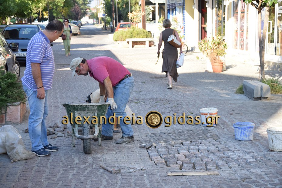 Παρεμβάσεις στις λακκούβες και στα σπασμένα πεζοδρομημένα τμήματα της οδού Πελοποννήσου στην Αλεξάνδρεια έκανε το πρωί συνεργείο του δήμου Αλεξάνδρειας.