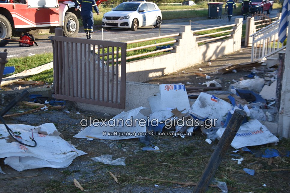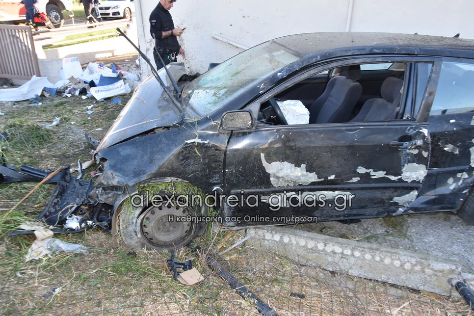 Από τη σύγκρουση τραυματίστηκε η οδηγός του οχήματος και μεταφέρθηκε με ασθενοφόρο στο Νοσοκομείο της Βέροιας.