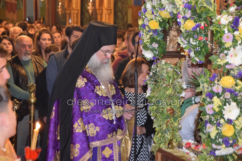 Πλήθος πιστών βρέθηκε φέτος στην περιφορά του επιτάφιου στον Ιερό Μητροπολιτικό Ναό Κοιμήσεως της Θεοτόκου στην Αλεξάνδρεια το βράδυ της Μεγάλης Παρασκευής 3 Μαΐου 2024.