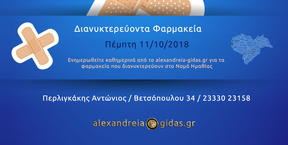 ΤΟΠΙΚΑ 11 Οκτωβρίου, 2018 posted by admin Share Ποιο φαρμακείο εφημερεύει σήμερα Πέμπτη στην Αλεξάνδρεια Αλεξάνδρεια: Αφήστε μια απάντηση Ακύρωση απάντησηςΗ ηλ. διεύθυνση σας δεν δημοσιεύεται. Τα υποχρεωτικά πεδία σημειώνονται με *Σχόλιο * Όνομα Email Ιστότοπος Αποθήκευσε το όνομά μου, email, και τον ιστότοπο μου σε αυτόν τον πλοηγό για την επόμενη φορά που θα σχολιάσω.