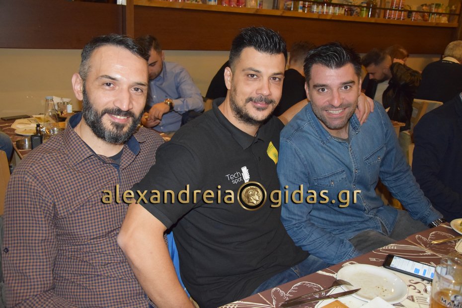 Γεύμα παραχώρησε ο δήμαρχος Αλεξάνδρειας Παναγιώτης Γκυρίνης και οι Στέφανος Δελιόπουλος – Μανώλης Σταυρής (Κοινωφελής Επιχείρηση του δήμου Αλεξάνδρειας) στην αντρική ομάδα μπάσκετ του ΓΑΣ Αλεξάνδρειας με αφορμή την κατάκτηση του κυπέλλου, το βράδυ του Σαββάτου 20 Οκτωβρίου στο Μεζέ Μεζέ στον πεζόδρομο Αλεξάνδρειας.