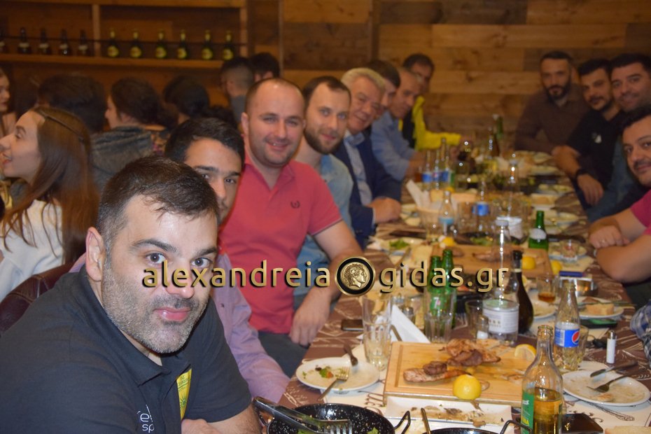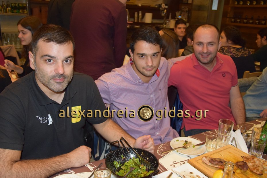 Γεύμα παραχώρησε ο δήμαρχος Αλεξάνδρειας Παναγιώτης Γκυρίνης και οι Στέφανος Δελιόπουλος – Μανώλης Σταυρής (Κοινωφελής Επιχείρηση του δήμου Αλεξάνδρειας) στην αντρική ομάδα μπάσκετ του ΓΑΣ Αλεξάνδρειας με αφορμή την κατάκτηση του κυπέλλου, το βράδυ του Σαββάτου 20 Οκτωβρίου στο Μεζέ Μεζέ στον πεζόδρομο Αλεξάνδρειας.