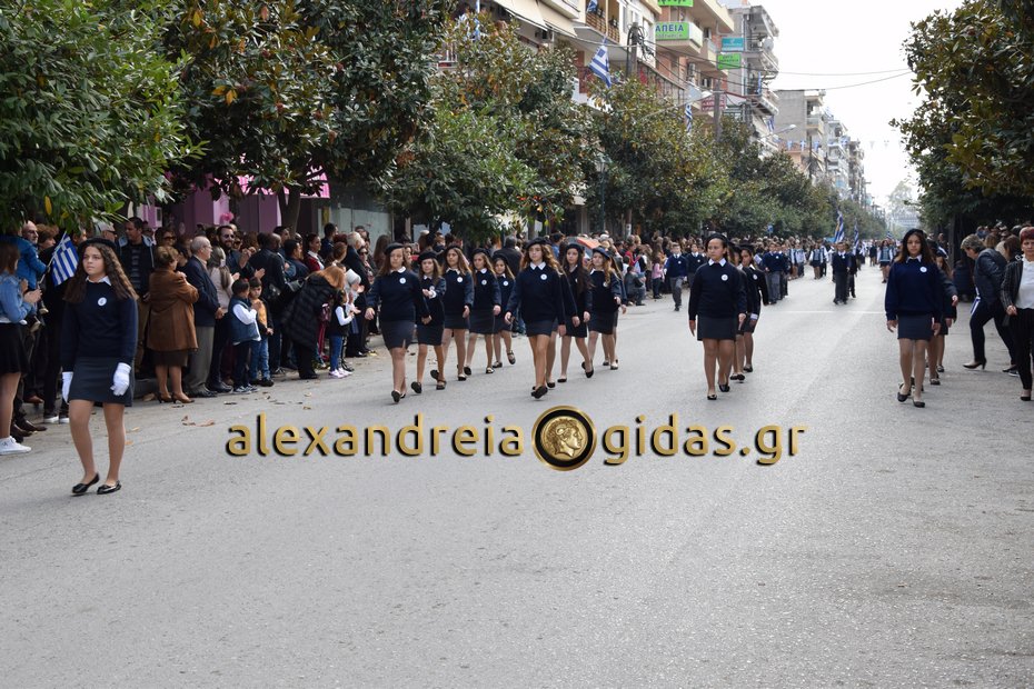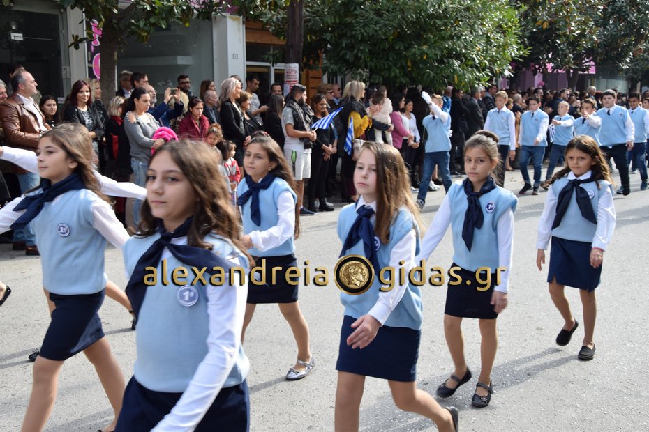 Πραγματοποιήθηκε σήμερα, Κυριακή 28 Οκτωβρίου, στις 12 το μεσημέρι η παρέλαση για την Εθνική Επέτειο στην κεντρική οδό Βετσοπούλου της Αλεξάνδρειας.