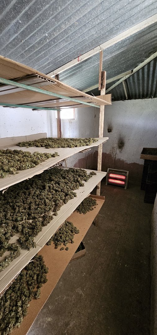 Ειδικότερα, μετά από συντονισμένη αστυνομική επιχείρηση, εντοπίστηκε ο προαναφερόμενος άνδρας και σε αποθήκη αγροκτήματος που διατηρούσε σε περιοχή της Πιερίας, εντοπίστηκαν ποσότητες ακατέργαστης κάνναβης σε αυτοσχέδια ράφια, συνολικού βάρους -14- κιλών και -673- γραμμαρίων, οι οποίες και κατασχέθηκαν.
