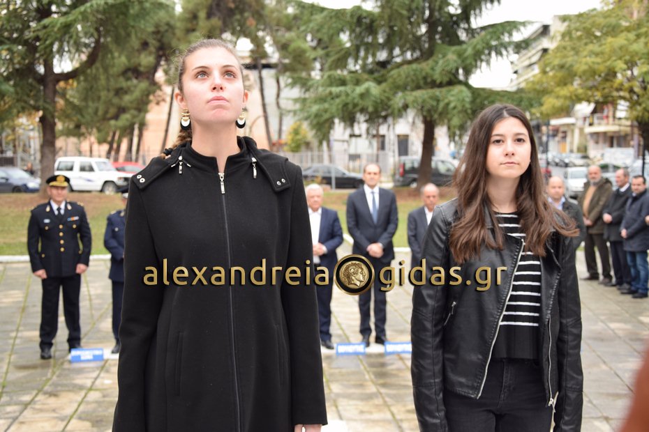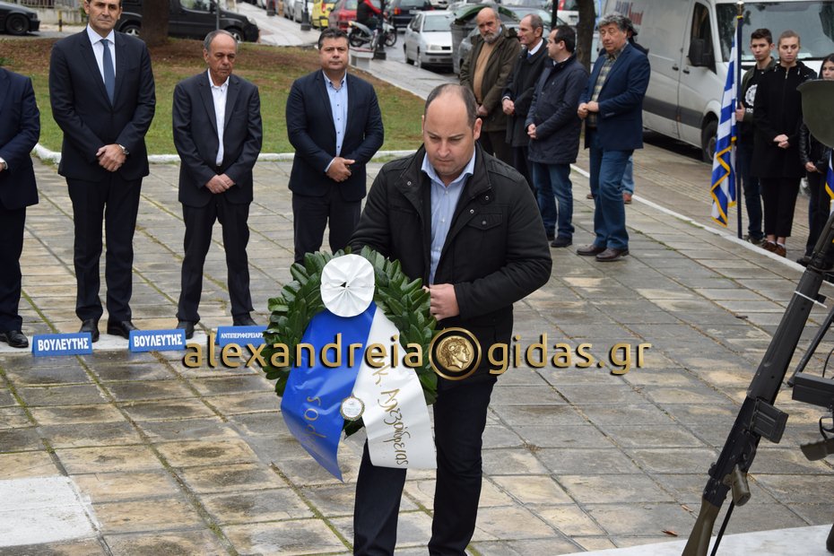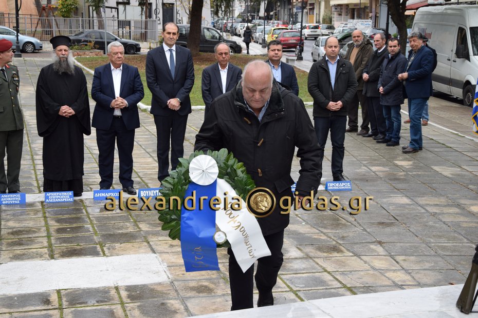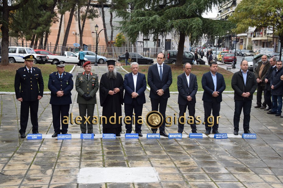 Κατάθεση στεφάνων στο Ηρώο στην Αλεξάνδρεια πραγματοποιήθηκε το πρωί του Σαββάτου 17 Νοεμβρίου 2018 στα πλαίσια των εκδηλώσεων στην πόλη μας για την 45η επέτειο του Πολυτεχνείου.