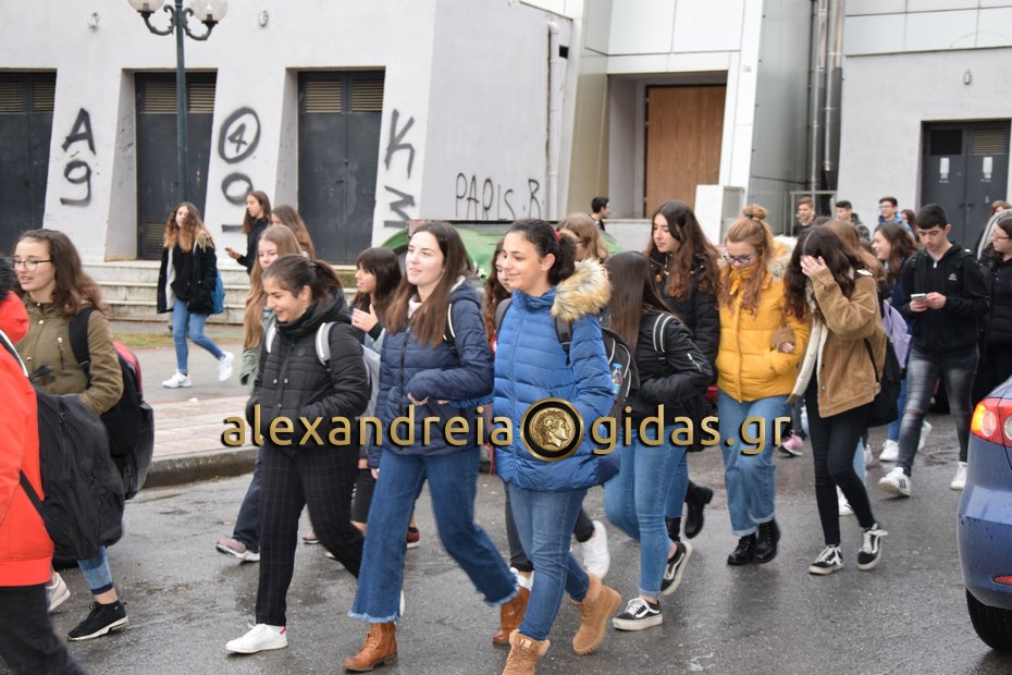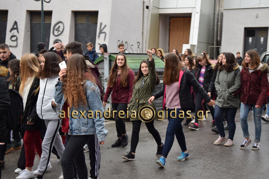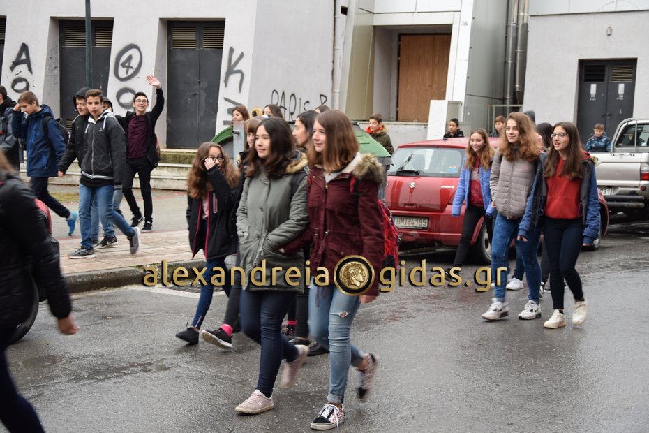 Στην πορεία συμμετείχαν μαθητές από τα 1ο Γυμνάσιο – Λύκειο Αλεξάνδρειας, 2ο Γυμνάσιο – Λύκειο Αλεξάνδρειας και κάποιοι μαθητές από το ΕΠΑΛ Αλεξάνδρειας.