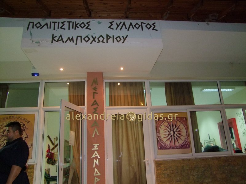 Το βράδυ του Σαββάτου 30 Σεπτεμβρίου το Δ.Σ. του Πολιτιστικού Συλλόγου Καμποχωρίου “Ο Μέγας Αλέξανδρος” διοργάνωσε μία βραδιά γλεντιού για τους φίλους και εθελοντές του συλλόγου οι οποίοι βοήθησαν στην πραγματοποίηση του πανηγυριού το οποίο πραγματοποιήθηκε στο Καμποχώρι στις αρχές του Σεπτέμβρη.