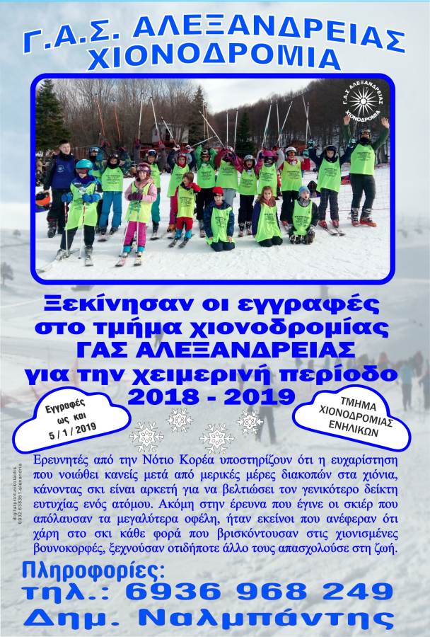 Οι εγγραφές για την περίοδο 2018-2019 ξεκίνησαν και θα συνεχιστούν έως τις 5 Ιανουαρίου