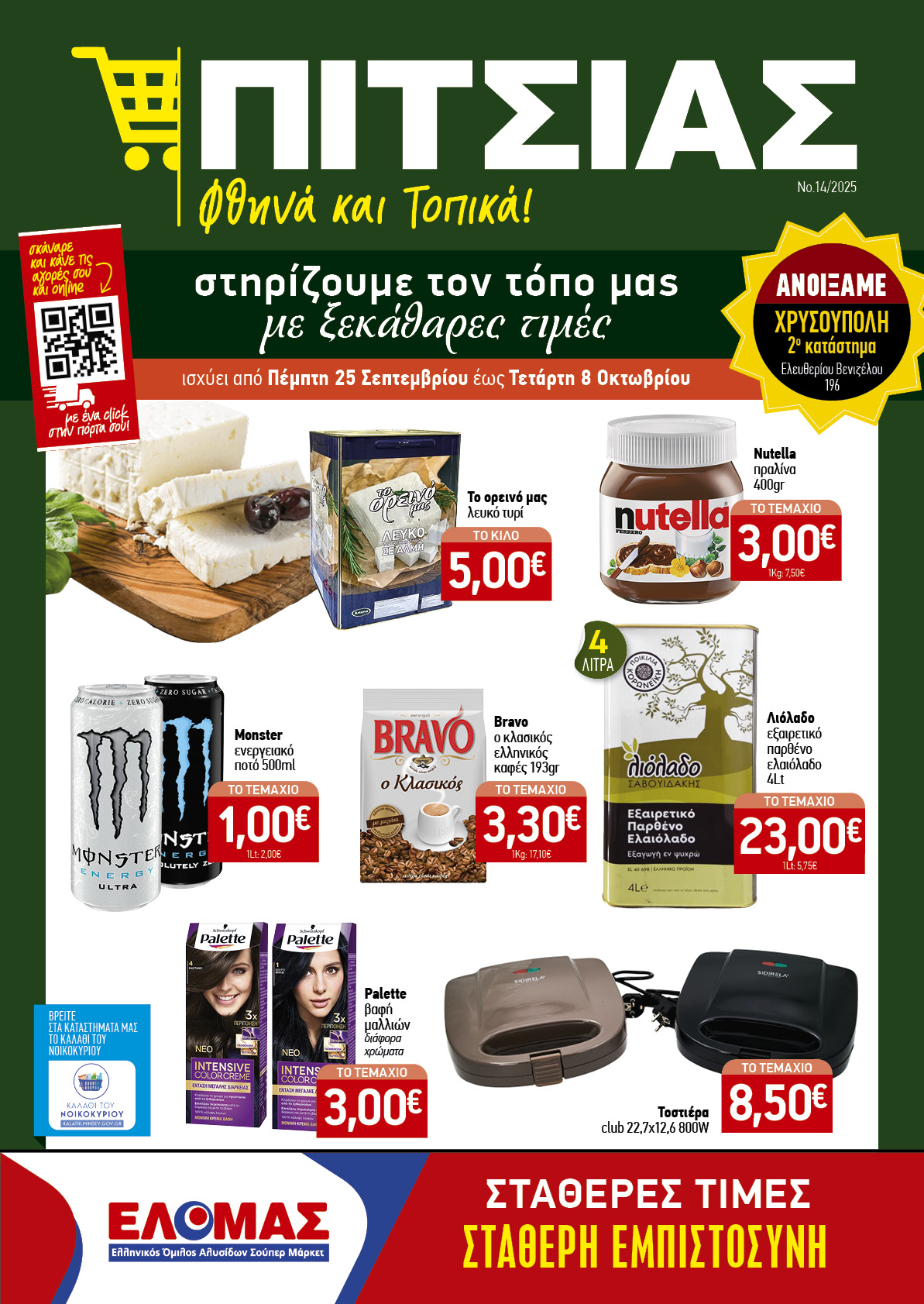 Γνωρίστε τις προσφορές και τις τιμές του καταστήματος που θα ισχύουν έως την Τετάρτη 8 Οκτωβρίου 2025 στις εικόνες που ακολουθούν: