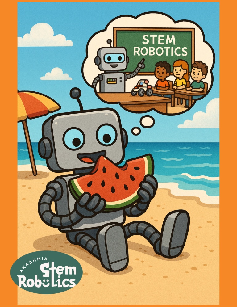 Στην Ακαδημία STEM Robotics Αλεξάνδρειας μπορεί να είχαμε βάλει παύση στα μαθήματα, αλλά τα μυαλά… έτρεχαν σαν ρομπότ με full μπαταρία!