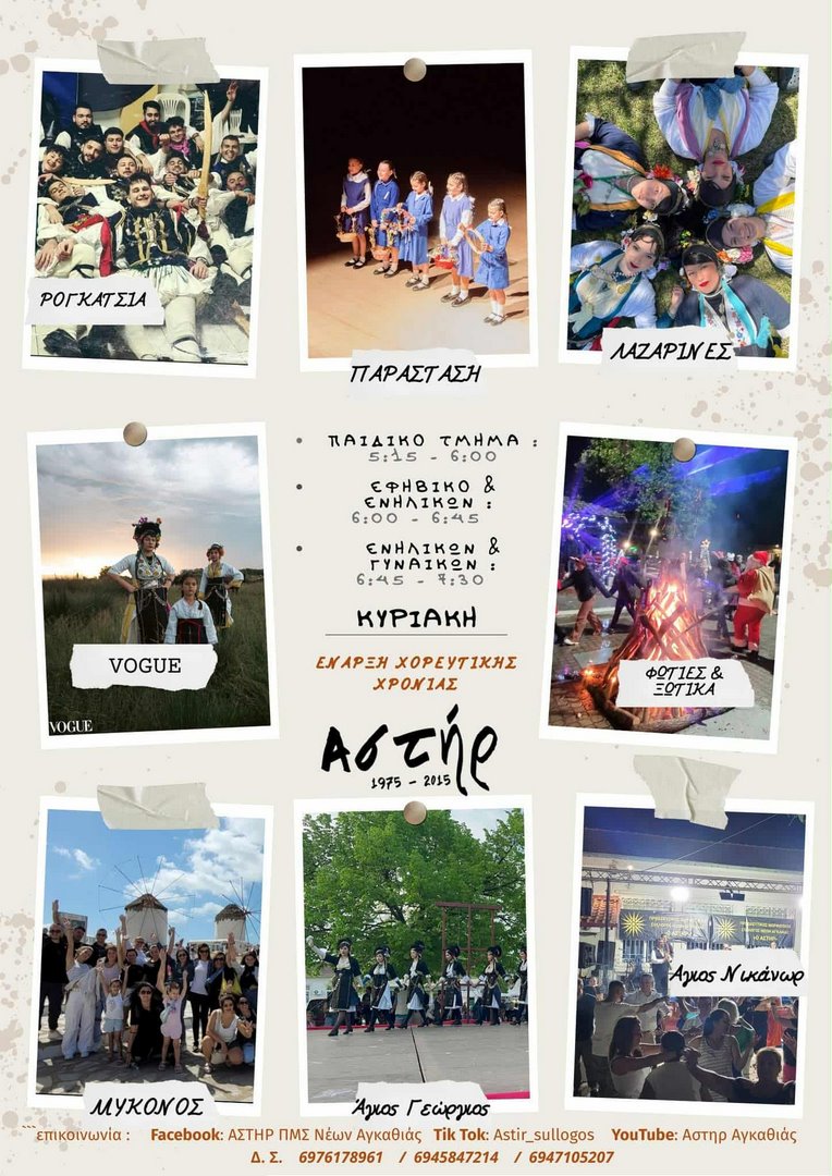 Ο Π.Μ.Σ. Νέων Αγκαθιάς “Ο Αστήρ” μετρώντας 51 χρόνια συνεχούς προσφοράς στον πολιτισμό, ανοίγει με χαρά την αυλαία της νέας χορευτικής χρονιάς.