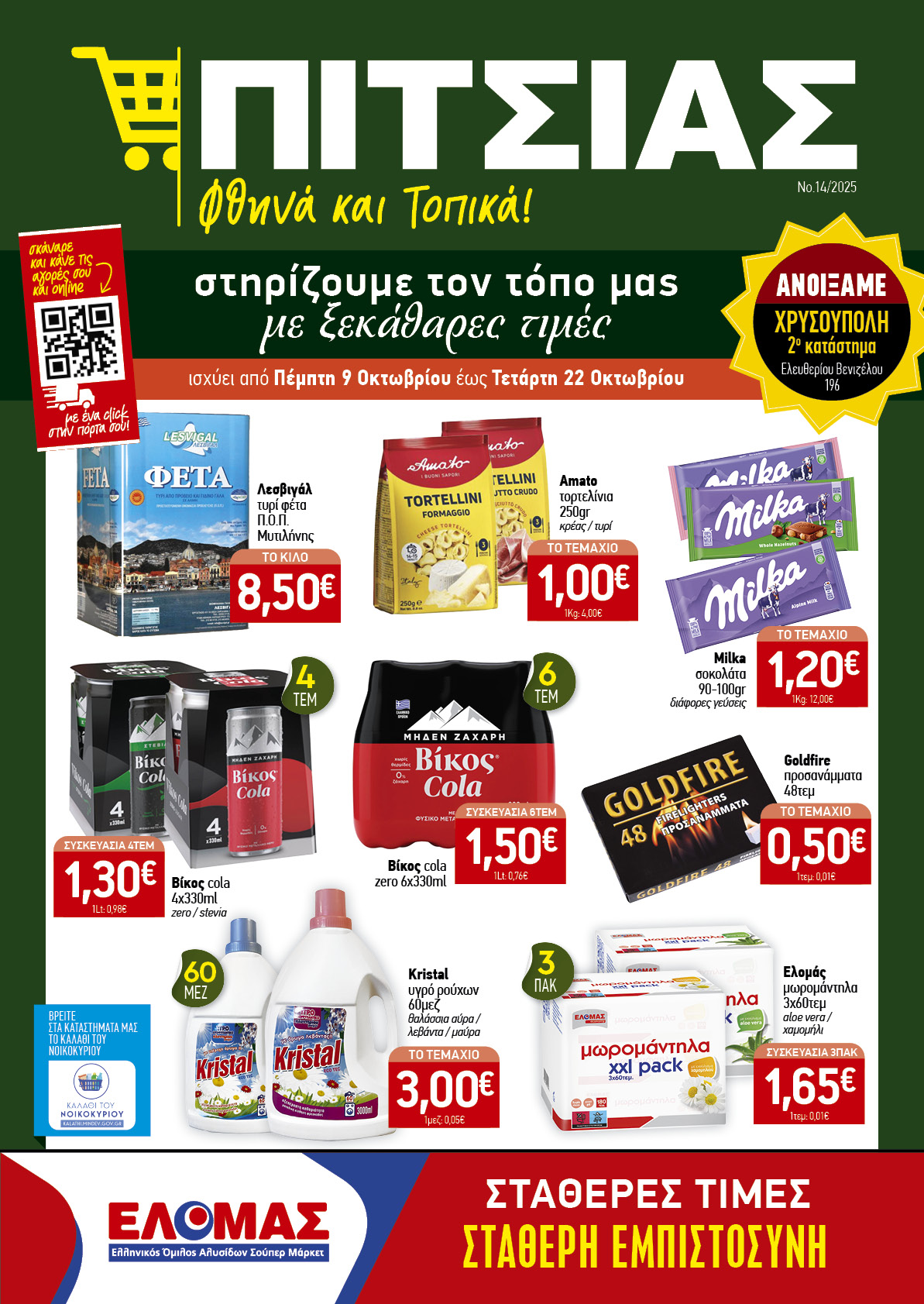 Από την Πέμπτη 09 Οκτωβρίου 2025 ξεκίνησαν οι ολοκαίνουριες προσφορές του σούπερ μάρκετ με νέο φυλλάδιο.