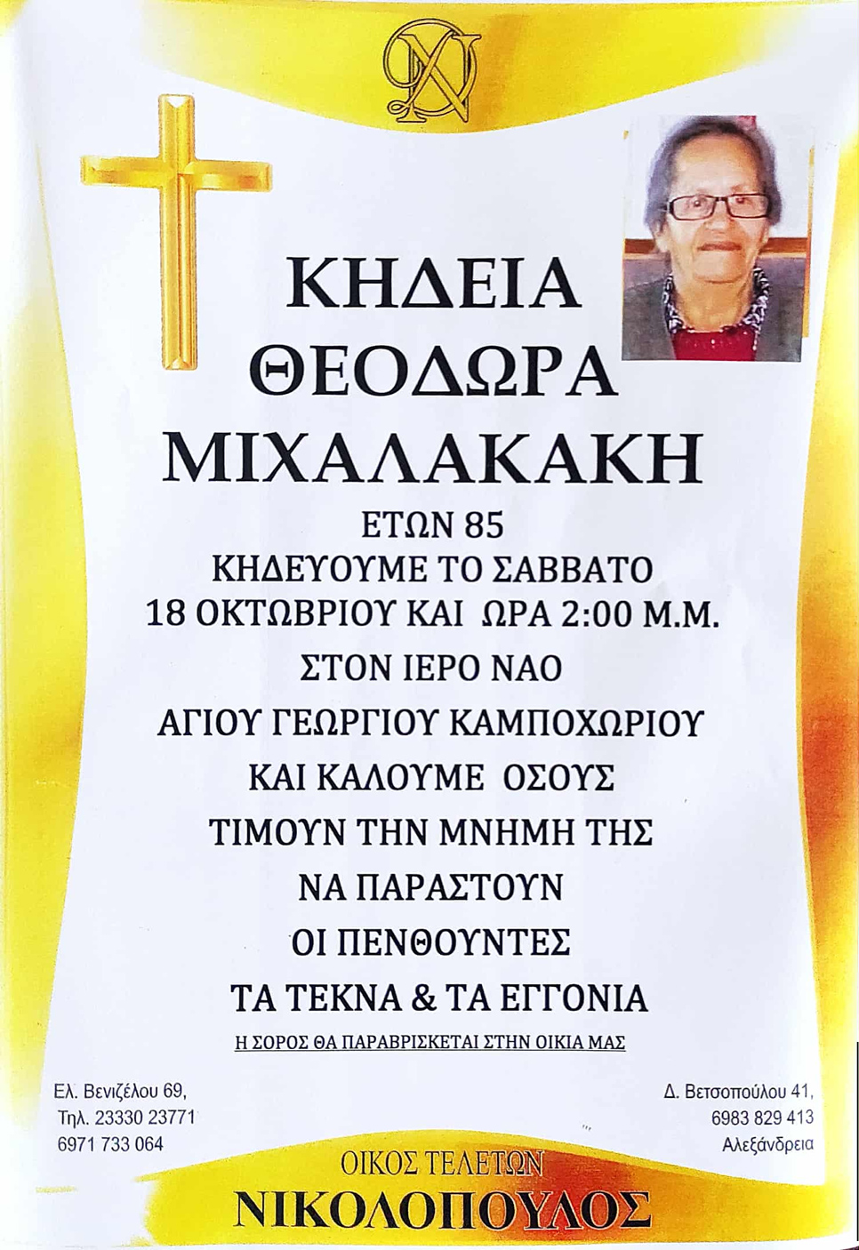 «Έφυγε» από τη ζωή η Θεοδώρα Μιχαλακάκη.