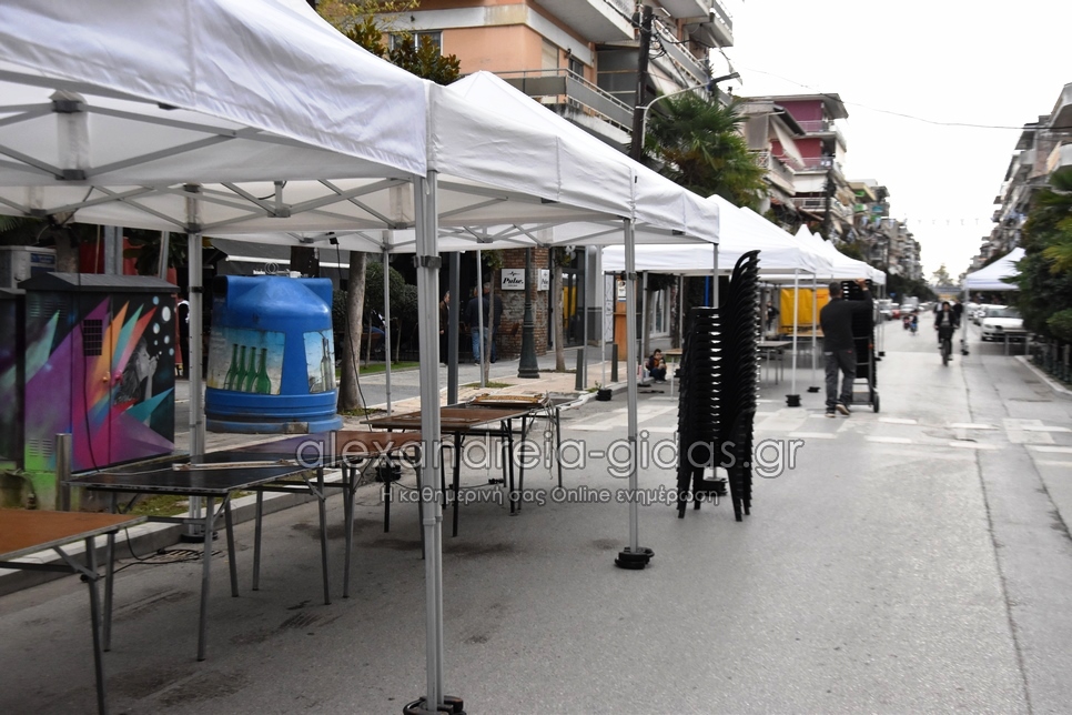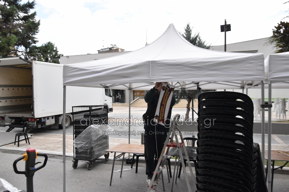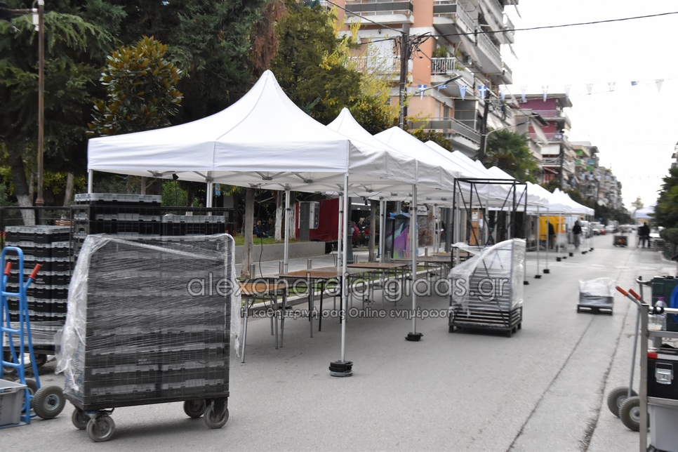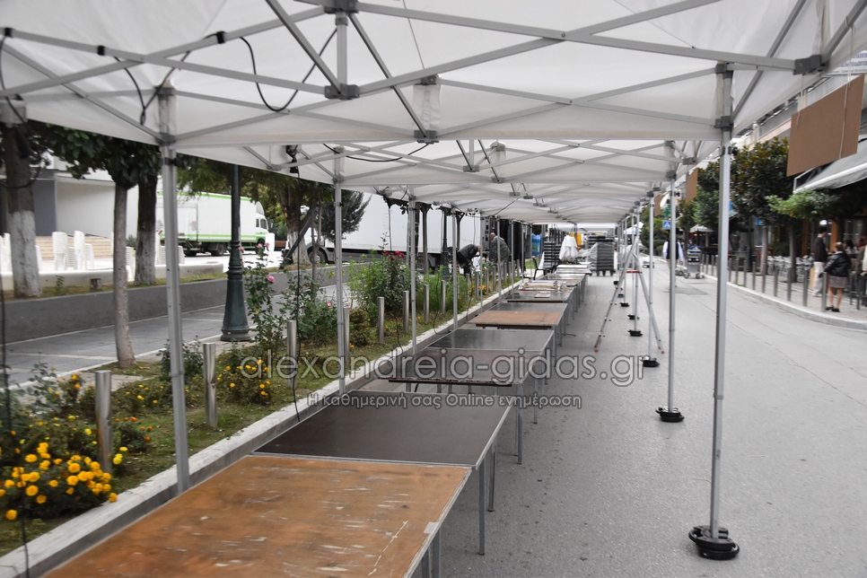 Τα περίπτερα στήθηκαν από το πρωί και όλα είναι έτοιμα για την βραδινή εκδήλωση.