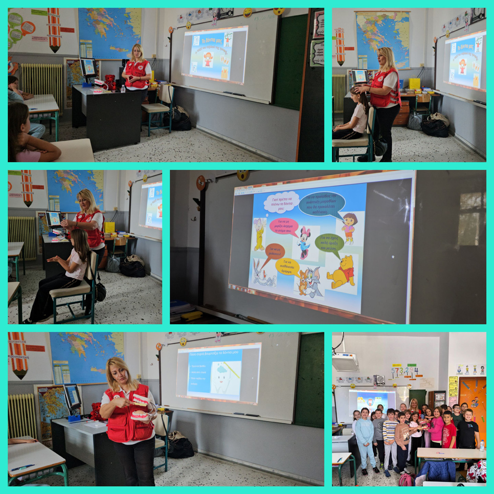 Οι μαθητές των Ε΄ και ΣΤ΄ τάξεων παρακολούθησαν παρουσίαση και πρακτική επίδειξη σχετικά με τις Πρώτες Βοήθειες, ενώ οι μαθητές των Α΄, Β΄, Γ΄ και Δ΄ τάξεων ενημερώθηκαν για θέματα που αφορούν την Ατομική Υγιεινή και τη φροντίδα του σώματός μας.
