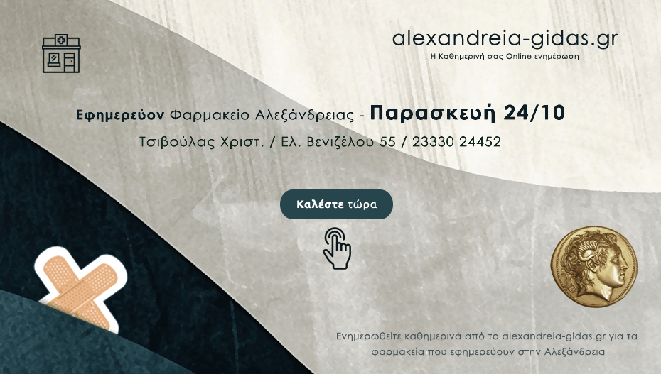 ΦΑΡΜΑΚΕΙΑ 24 Οκτωβρίου, 2025 posted by admin Share Ποιο φαρμακείο εφημερεύει σήμερα Παρασκευή στην Αλεξάνδρεια 🔊 Ακούστε το άρθρο κάνοντας κλικ Αλεξάνδρεια: (κλικ στην εικόνα παρακάτω για να καλέσετε απευθείας το φαρμακείο) Αφήστε μια απάντηση Ακύρωση απάντησηςΗ ηλ. διεύθυνση σας δεν δημοσιεύεται. Τα υποχρεωτικά πεδία σημειώνονται με *Σχόλιο * Όνομα Email Ιστότοπος Αποθήκευσε το όνομά μου, email, και τον ιστότοπο μου σε αυτόν τον πλοηγό για την επόμενη φορά που θα σχολιάσω.