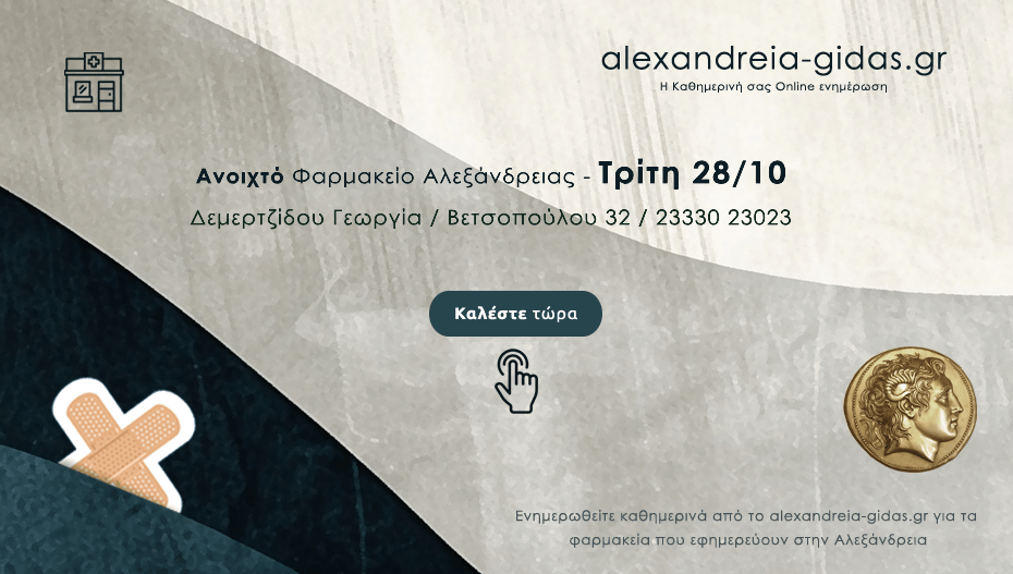 ΦΑΡΜΑΚΕΙΑ 28 Οκτωβρίου, 2025 posted by admin Share Ποιο φαρμακείο εφημερεύει σήμερα Τρίτη στην Αλεξάνδρεια 🔊 Ακούστε το άρθρο κάνοντας κλικ Αλεξάνδρεια: (κλικ στην εικόνα παρακάτω για να καλέσετε απευθείας το φαρμακείο) Αφήστε μια απάντηση Ακύρωση απάντησηςΗ ηλ. διεύθυνση σας δεν δημοσιεύεται. Τα υποχρεωτικά πεδία σημειώνονται με *Σχόλιο * Όνομα Email Ιστότοπος Αποθήκευσε το όνομά μου, email, και τον ιστότοπο μου σε αυτόν τον πλοηγό για την επόμενη φορά που θα σχολιάσω.